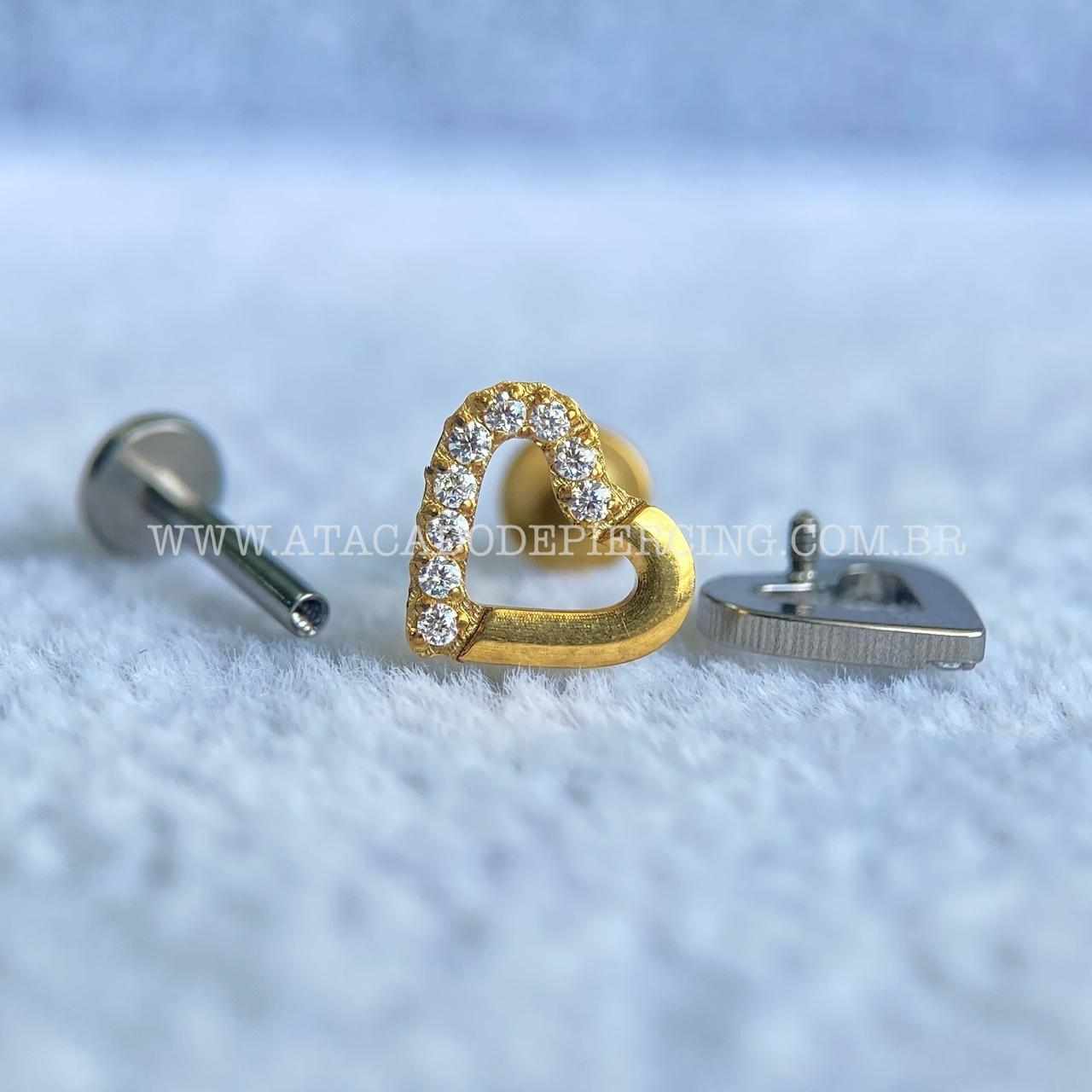Labret Rosca Interna Titânio Coração Zircônias